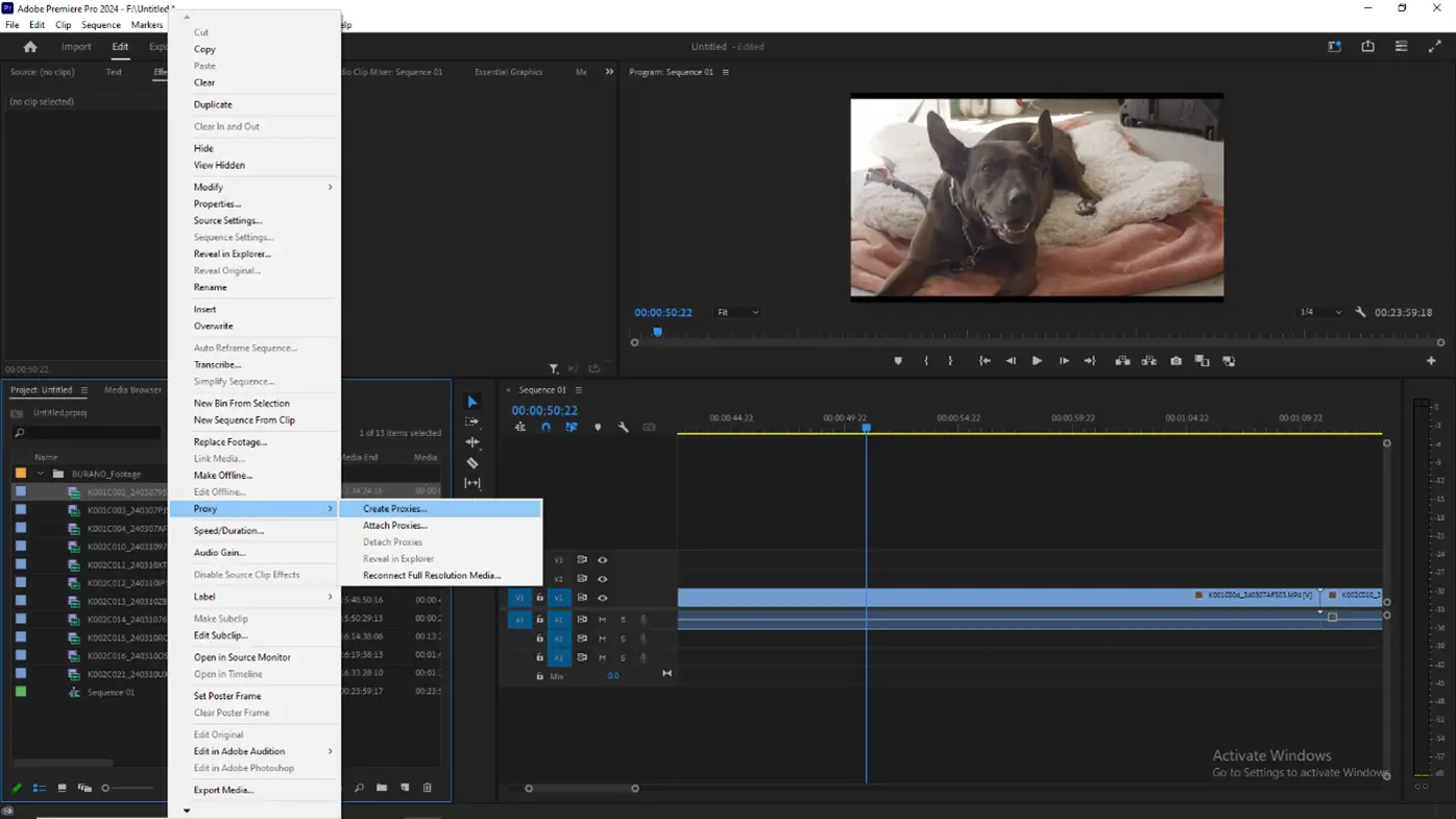 To create proxy files in Premiere Pro, you can right-click on your footage in the Media Viewer, then navigate to Proxy, and click Create Proxies.