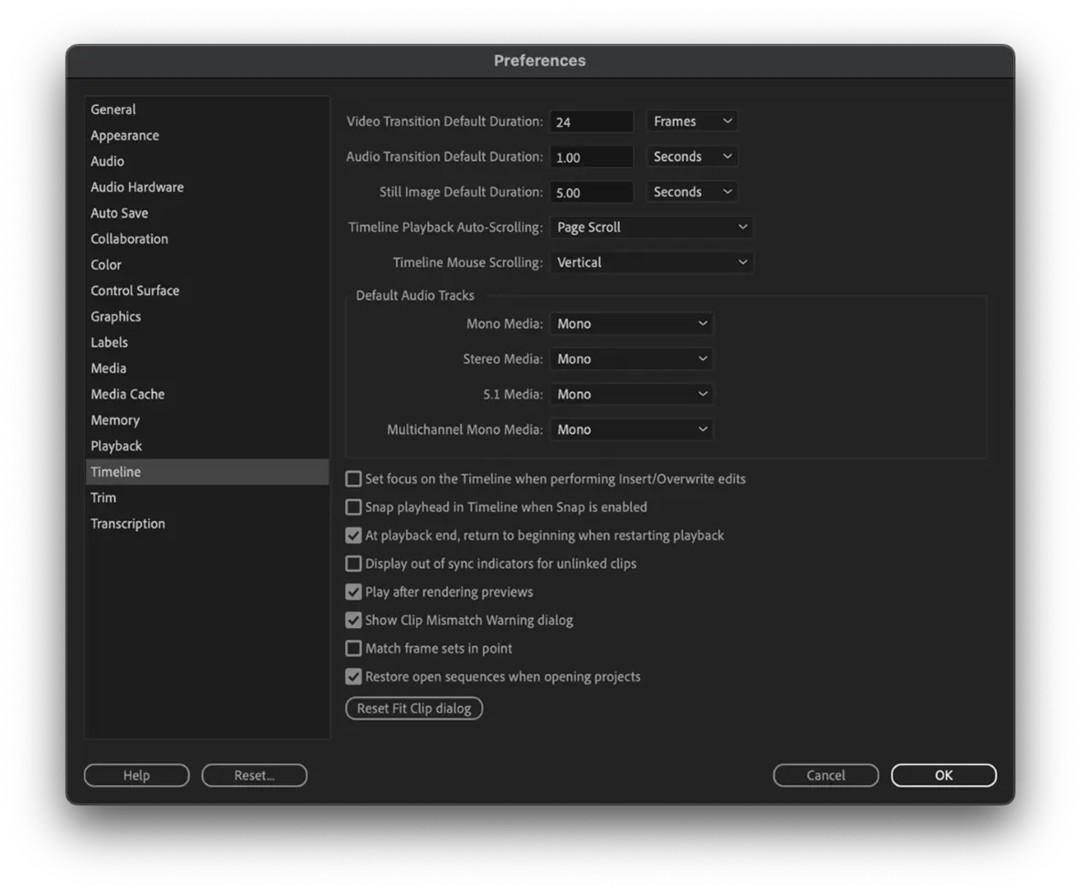 In Premiere Pro Timeline Preferences, it’s best to set your audio channels to mono. This will allow Premiere Pro to recognize each track as its own individual channel.