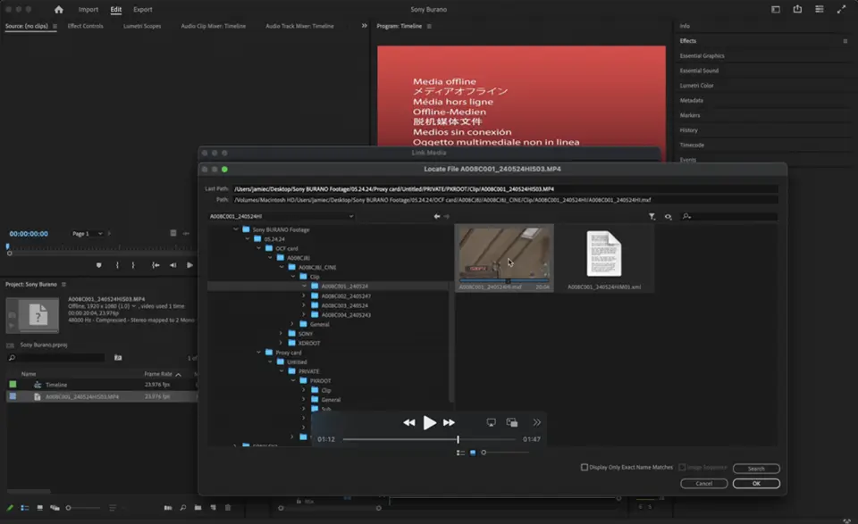 The Sony BURANO records up to 8K resolution with multichannel audio, while also recording Proxy files. While filming, if you are using booms, lavs, or shotgun mics, you will always be dealing with multichannel audio. Because the proxy files only record stereo audio, here are some best practices when working with original camera file (OCF) multichannel audio and Proxy stereo audio files in Premiere Pro.