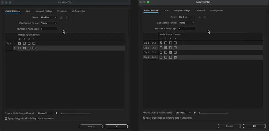 Set Clip Channel Format: Mono and Preset: Use File. Select OK.