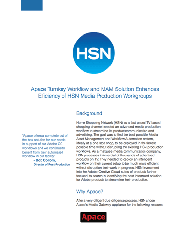 Apace provides turnkey solutions for Adobe Creative Cloud production workflows, media asset and storage management (MAM/PAM). As a single vendor, Apace guarantees end-to-end working results. Apace enables integrated solutions and global/remote multi-site media/video editing with distributed collaboration direct from Adobe panels. Apace also offers software as service (SAAS) on the edge or the cloud with unique single virtualized view for managing globally scattered enterprise media data, online or offline. Our versatile solutions serve corporate enterprise, M&E, government, house-of-worship, and education markets.