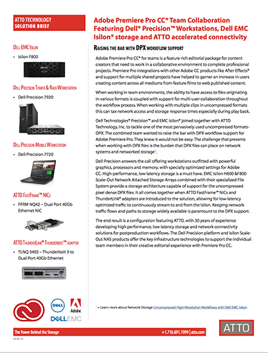 ATTO Technology develops innovative storage and network connectivity solutions that work with Adobe Creative Cloud tools to maximize workflow efficiency and creative output. ATTO Fibre Channel and SAS HBAs, Thunderbolt Adapters, SmartNICs, and NVMe Switch Adapters offer super low-latency, high-bandwidth data transfers for Adobe media production applications: Adobe Premiere Pro, Adobe Audition, and Adobe After Effects.