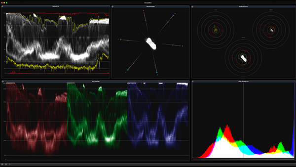 ScopeBox is an easy-to-use, low-cost application that transforms users’ Macs into a complete video analysis suite. It recreates every major video quality assurance tool, including Preview Monitor, Waveform, Vectorscope, Audio Meter, Luminance Histogram, RGB Histogram, and RGB and YUV Parade. ScopeBox monitors live video signals via a third party capture device, or direct from the timeline within Adobe Premiere Pro CC, and After Effects CC.
