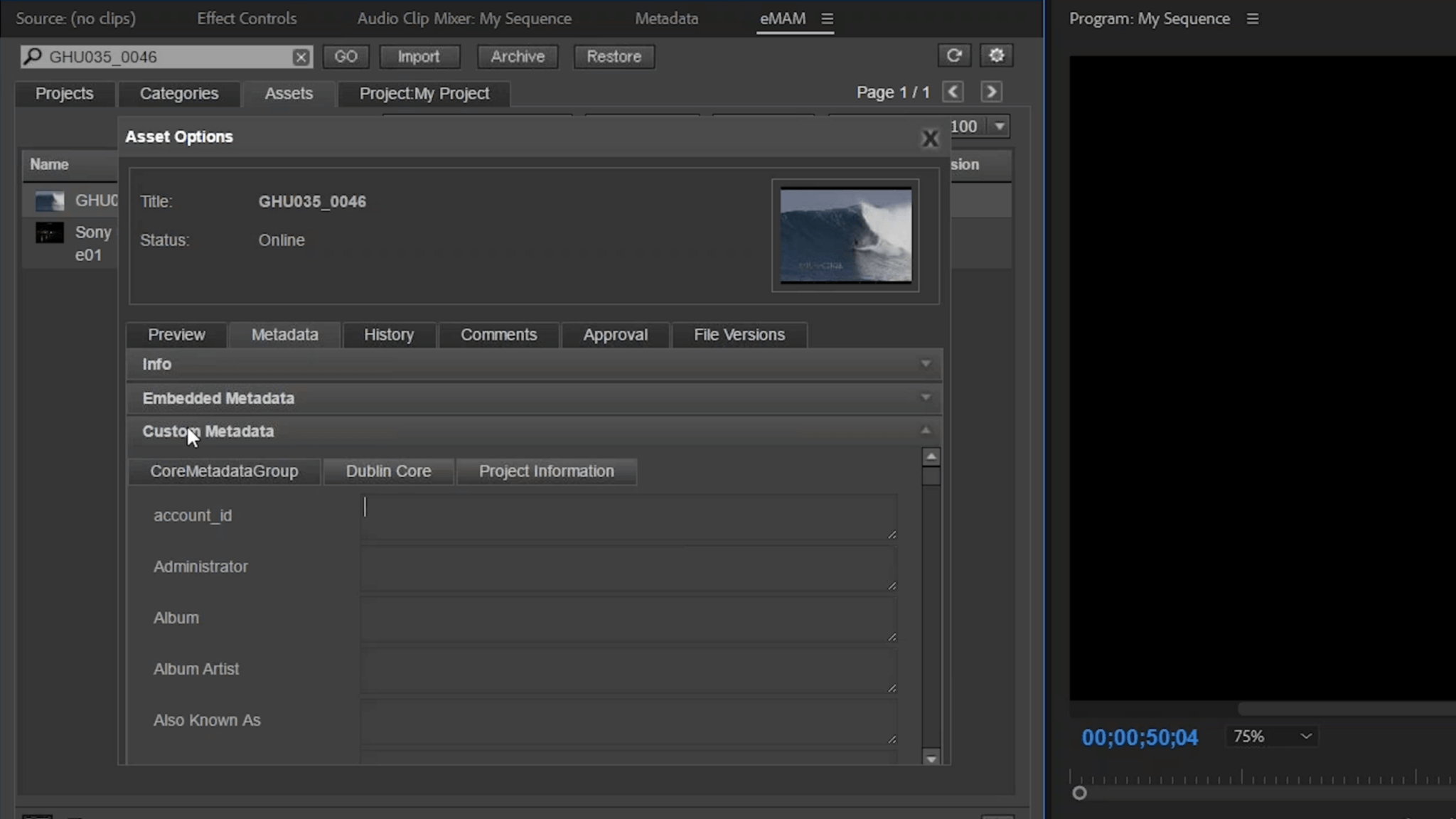 eMAM integrates seamlessly to Adobe applications through panel extensions. Once the panel is installed through our App Manager, users can connect instantly to their media directly from their Adobe project, whether it’s stored in a cloud, local, or hybrid arrangement.