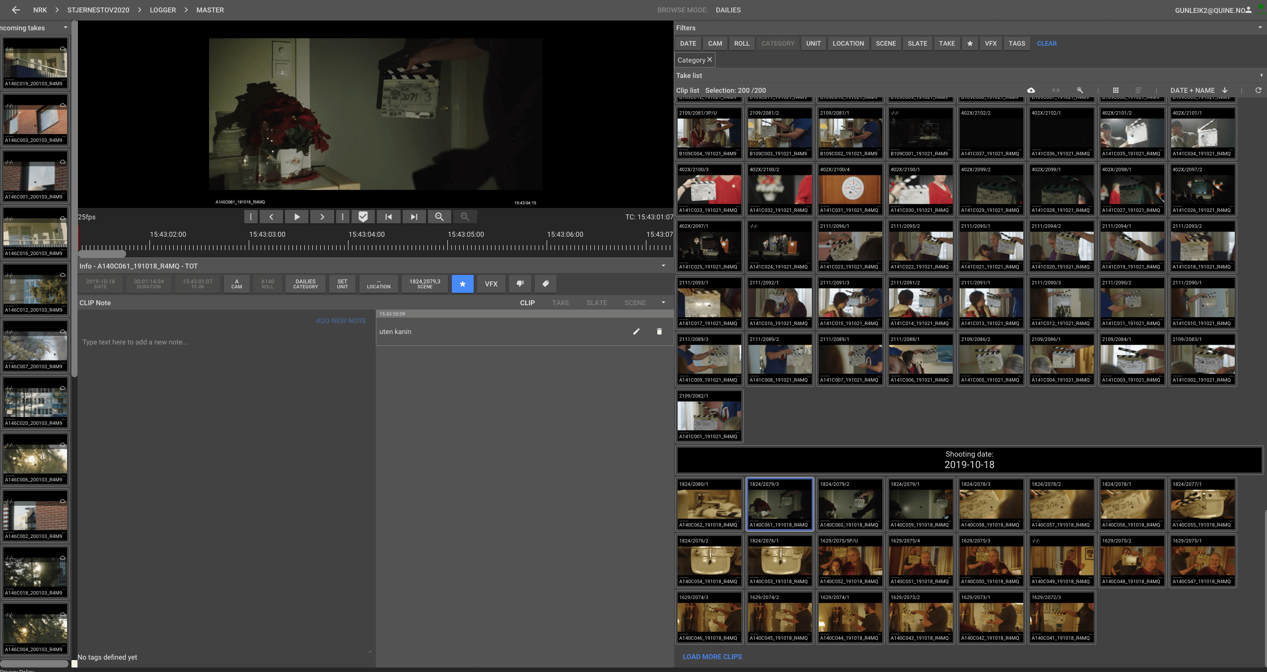 Quine is all about automating workflows in large media productions. With the Quine platform, stakeholders can ingest, transcode, browse dailies and review files, log, integrate script notes from MovieSlate®, annotate, interact select and share content between stakeholders around the globe. Taking Production Asset Management to a new level.