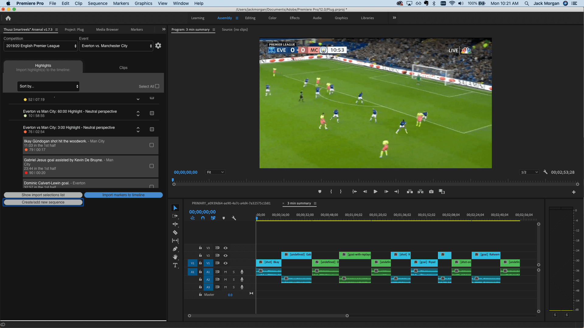 Automated clip and highlight data can be programatically and manually exported to adobe panel for clip and highlight creation with advanced graphics.